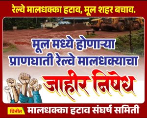 मूल मध्ये रेल्वे मालधक्का होणार असल्याच्या बातमीने जनक्षोभ पेटला आहे. जनभावना तीव्र झाली आहे.त्यासाठी मालधक्का हटाव संघर्ष समिती स्थापन झाली आहे. मात्र,एका छुप्या गटातून मूल मध्येच रेल्वे मालधक्का झाला पाहिजे,त्यासाठी सहयांची मोहिम राबवली जात असल्याचे चित्र मूल मध्ये आहे. खळबळ माजविणारे एक निवेदन सोशल मिडीयावर चांगलेच व्हायरल होत आहे. मूल मध्येच रेल्वे मालधक्का व्हावा , ऐवढा अट्टहास या लोकांचा का असावा ? असा सवाल जनतेच्या मनात आहे. लोकांच्या भावनांशी खेळून मालधक्का तुम्हाला ‘अर्थ‘पूर्ण करणार आहे का?हा गंभीर प्रश्न या निमित्ताने निर्माण झाला आहे. रेल्वे मालधक्का नेमका कुणाला हवाय ? असा सर्व्हे मूल मध्ये केला का ? ग्रामसभा भरवली का ? जनतेचा आवाज लक्षात घेतला जात आहे का ? तर,या प्रश्नांची उत्तरे ‘ नाही ‘ असा आहे.